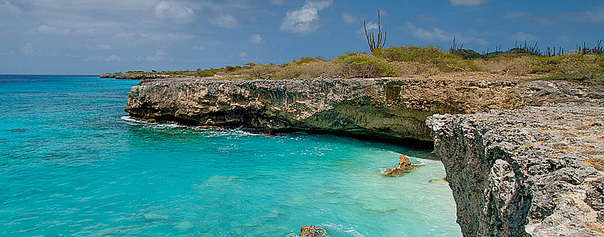 De kustlijn van Bonaire kent twee gezichten. Aan de westkant liggen enkele smallestrandendie veelal bezaaid zijn met prachtig versteend koraal en door zeestromingen gepolijste kiezelstenen. Op de kust beukende golven en een straffe wind vind je aan de oostkant. Het water en de wind van de Caribische Zee hebben hier het gesteente in de meest grillige vormen geboetseerd. Aan deze kant van Bonaire worden de kale kalksteenplateaus onderbroken door grillige boka’s (baaien) met betoverende stranden.